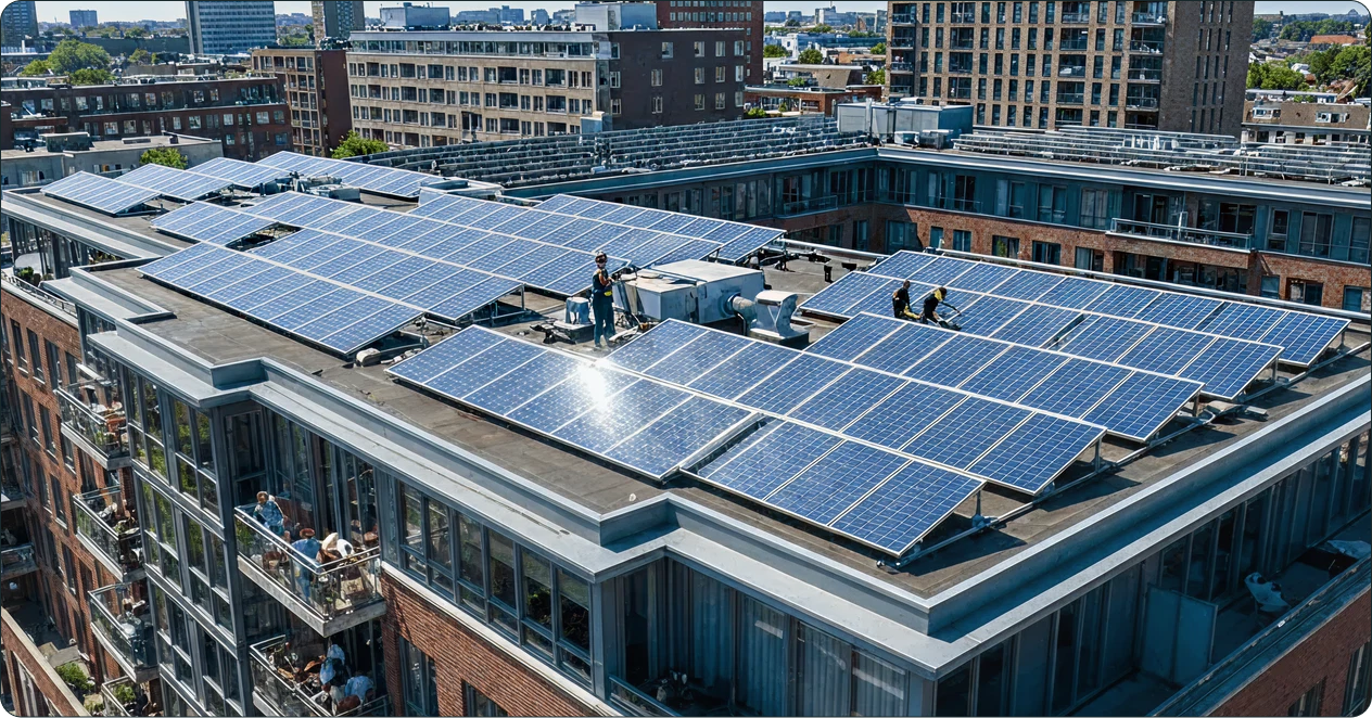 Shared rooftop solar can help reduce common property electricity costs, provide fairer access to renewable energy for residents including renters, and improve the long‑term sustainability and appeal of a building. With energy prices remaining volatile, solar also offers greater cost stability over time.